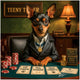 - Design: Miniature Pinscher in black tux and gold bowtie, seated at a poker table with Wag Wagers, Snout Stacks, and Pinny Pots