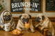 - Scene: Three bulldogs on a sunny café patio—soup bowl, tall mimosa, golden muffins & plush chairs