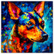 "Miniature Pinscher 03" captures the bold and lively nature of this beloved breed through an expressive palette knife painting technique. The breed’s sleek build, upright ears, and spirited expression make this artwork a perfect addition to any dog lover’s collection.
