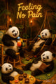 - Design: Three pandas lounging at a bamboo bar with tropical drinks and sunset lighting