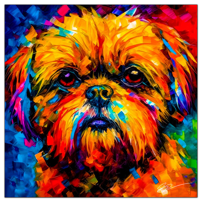 Brussels Griffon, a captivating and charming furry companion, comes to life in this exquisite palette knife painting style on stunning ChromaLuxe Metal Prints. Limited edition are artist-signed and numbered. This artwork beautifully captures the unique characteristics and personality of the Brussels Griffon, creating a lasting and modern artwork.