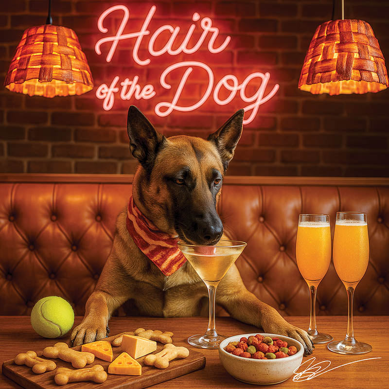 Bring home Belgian Malinois's Neon Brunch Bash, a playful centerpiece ready to spark conversation. Printed on ChromaLuxe™ Dye-Sub Metal, the neon “Hair of the Dog” glow, bacon-woven accents, and sunny-side-up egg murals burst with lifelike color. Durable and fade-resistant, this piece captures Belgian Malinois’s poised gaze and whimsical bar décor in stunning clarity—ideal for dog lovers seeking art with personality.